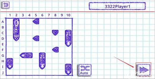 3、然后就进入到了一号玩家的布阵阶段,这里的话,点击Auto按钮可以一键随机布阵,布阵完成后点击右下角的【下一步】图标。