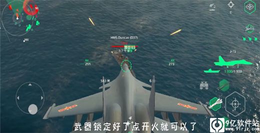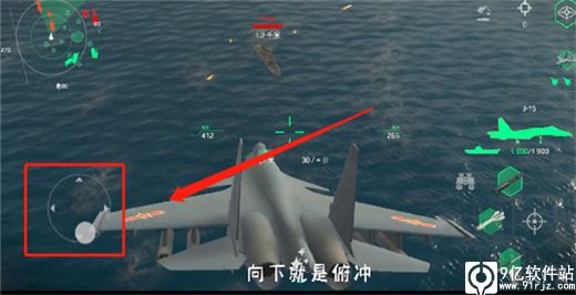 3、屏幕向上滑是拉升,向下滑是俯冲,武器锁定点击开火。