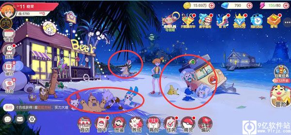 3、多人同屏自由探索,十多张大型地图,自由收集宝可梦来配置阵容