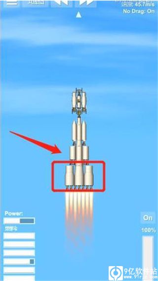 3、点击发动机的位置,启动发动机,点火升空,记得可以用油门杆调节油门的大小哦;