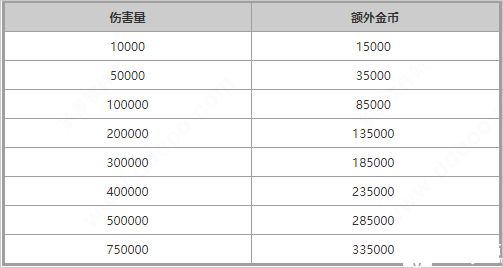 3、对应伤害所额外获得的金币奖励,在挑战过程中,当玩家达到对应的伤害指标时,系统还会额外的赠送金币奖励噢(对照表如下↓↓↓),而且赠送的数目还是十分可观的。因此在挖掘金矿的旅途中,大家就尽情的输出,赚钱吧。
