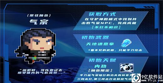 击败神秘人即可解锁新角色气宗,并获得一个天赋加成(手刀会消耗能量释放刀波)