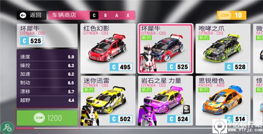 2、进入商店后,选择要解锁的赛车,可以看到解锁赛车所需的金币,点击购买即可解锁;