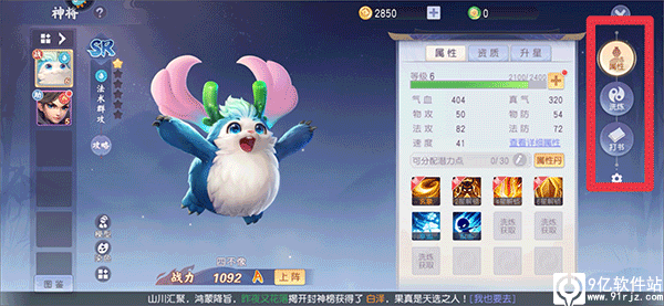 9、获得的神将可以帮助你一起战斗,而玩家也可以对神将通过升级、洗练、打书来提升它的属性