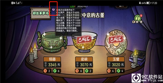 点问号,对于新手(胆小的)来说,初出茅庐场是非常非常适合滴(比如我这个既想赚钱钱又想开心的抠门鬼)!点击换一批就可以刷到,要是刷到无怨无悔场,立马再点一次(比如我这个蠢货买了个黑心赝品,真是离谱的惊心动魄)!