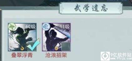 2、勾选想要遗忘的武学,即可遗忘这个武学技能,同时会返还培养武学消耗的潜力点以及突破丹;