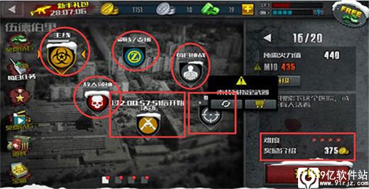 首先给大家介绍下关卡选择界面(见上图),目前游戏由“主线”、“刷钱”、“BOSS”、“每日挑战”、“狙击关卡”和“活动”共六个不同部分组成。玩家只要随着主线走,逐步提升自己等级,各游戏功能也会逐渐展开。玩家通过点击屏幕中央的图标来选择各模块,而在右边则会出现相应关卡内容,如关卡数,关卡火力要求,以及难度奖励等。选择完了关卡,那就点击“开始”按钮,进入僵尸前线第一现场,消灭僵尸,拯救幸存的小伙伴们。