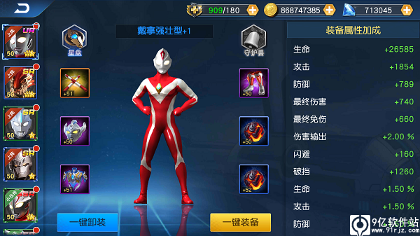 而在奥特曼王者传奇手游的养成方面呢,我们可以通过给卡牌升阶、升星、觉醒、进化的方式给予角色战力的提升,同时也能传承装备、守护兽和星盘方式进行供给,让我们出战的奥特曼实力更为强大,这里就强调一下装备的传承虽然是非常方便的,只需要花费一点钻石就能将翅膀、武器、衣服等部位的装备一键传承,非常方便,如果你是手残党的话,这款手游还是支持一键挂机的,能够让你领取在线的资源和经济,但是不能提升等级,战斗中技能的选择也可以调整为自动释放,毕竟在打副本的时候,要是一直按着技能键那得多累啊,总之,无论是从其经典奥特曼ip来看,还是其多样化的玩法,都在同类手游中属于佼佼者,很值得一试!