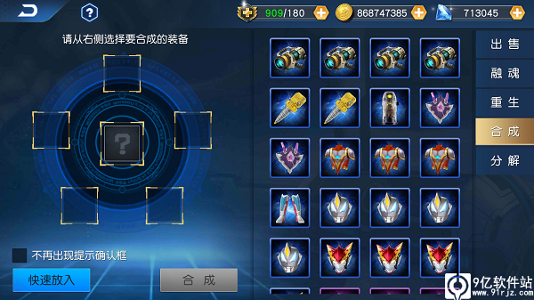 游戏中装备分为5种品质,从上到下依次是金色、紫色、蓝色、绿色、白色。装备的品质无法成长,需要通过回收系统中的合成来打造更高品质的装备。品质越高,装备的属性也就越高,提供的加成也越多。