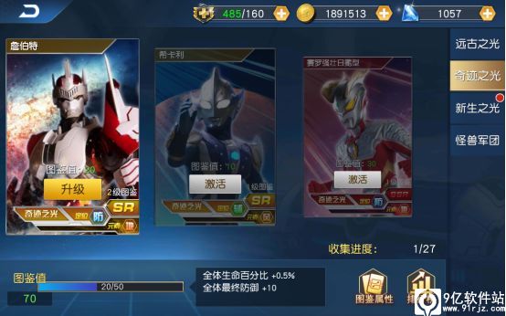 5、击败怪兽获得金币,可以拿去升级自己的奥特曼和招募新的奥特曼,来帮助你战斗。