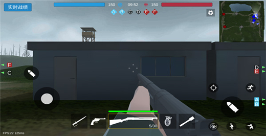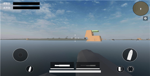 进入战场后,我们可以看到是坦克的第一人称视角,左边是摇杆操作移动,右边则是开火,在血条旁边的则是瞄准镜,非常有意思的是,当你击出一炮弹后,会有一个5秒的重新装弹时间,点击下方的小子弹则可以选择机枪模式,炮弹击出还可以看到真实的炮弹下落情况,不得不说,这物理引擎蛮有意思的。