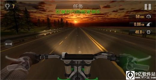3、游戏任务分为两种:在规定的时间内到达终点和超车。终点的到达只需要你加快速度就能实现。但是超车却颇有难度,要求近距离超车,这个距离有多近需要你自己把握好度,否则就会发生车祸哦。