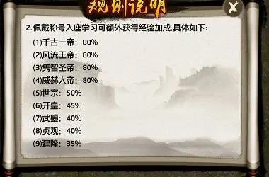 佩戴称号后,在翰林院学习还可以额外获得经验的加成,具体的加成如下图所示: