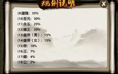 游戏内的称号分为:公、卿、王、帝、皇帝、实名帝、青史帝