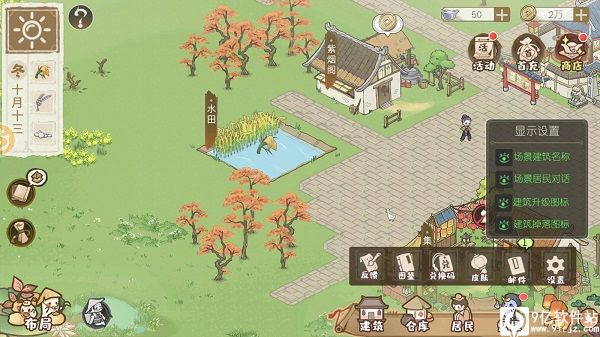 1、玩家们在刚进入游戏后,会获得一个小田园和一些小村民,玩家们需要不断经营它,田园本身分为很多不同的区域,这些区域所规划的东西都是不一样的,比如鱼池、田地、圈养场、果林、房屋、庭院等等,不过大部分东西都是要等后期才可以开启的,一开始只会出现小规模的地皮,并且这个地皮还十分荒凉,大家需要利用这个地皮来慢慢发展,这里小伙伴们可以选择建造一些最基本的农业建筑,例如小菜园、水池等等,然后在里面种植一些蔬菜、饲养一些鱼类。