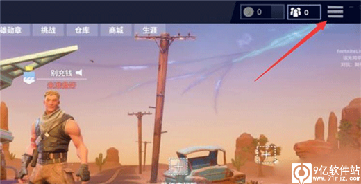 1、首先我们进入堡垒之夜手游游戏,然后选择上方的下拉框图标,然后进行点击。
