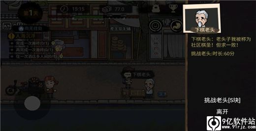 3、两种选择一种是“挑战老头”,另一种是“离开”,点击挑战老头。