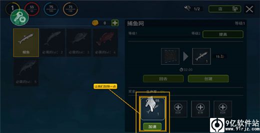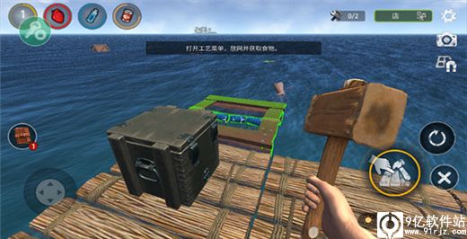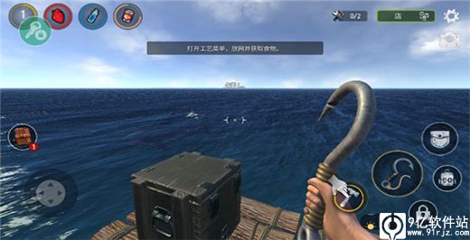 1、打开木筏生存多人联机版的工艺菜单,放网获取食物;