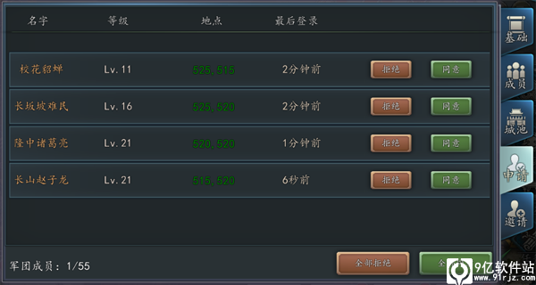 军团成员主要为军团长和普通成员,军团长掌管整个军团的生杀大权,可以委任官员和发布公告、军团邮件等,军团成员加入军团后可以完成具体任务,享受军团加成福利,与军团中的战友一起攻打世界城池。