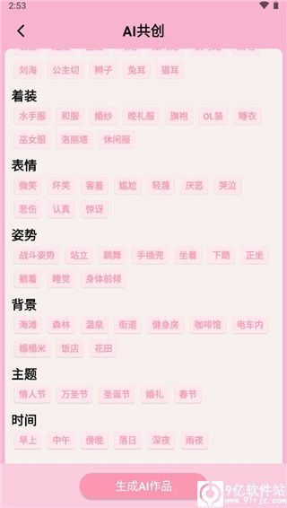更加强大的是,软件内还提供了AI作画功能,用户可以使用开发者配置好的词条进行筛选,最后将自己觉得合适的词条投入软件内使用AI进行作画,十分的新鲜有趣。如果你也喜欢这款软件的功能,那就速来本站下载这款傲娇壁纸app吧。