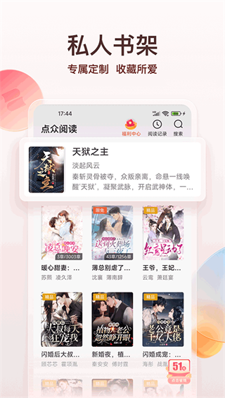 3、点众阅读app最新版线上为你实时推荐最新的免费小说阅读服务,线上为你带来超棒的追书服务;