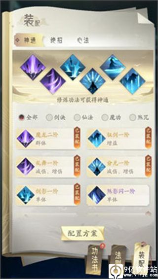 功法系统是凡人修仙传人界篇手游里最重要的养成系统之一,在任务打怪、副本输出、单人斗法、多人斗法等多种场景下,运用不同的功法配置,可以更有效的推进游戏和获取pk胜利,下面带大家详细了解一下功法系统:技能选择:剑诀、法诀
