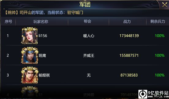 本服的皇帝和三个国家的君王分别可控制一只军团部队,是由本服排行榜前列的玩家的部队镜像组成,战力强大。用于夺取点位和防守都十分好用。
