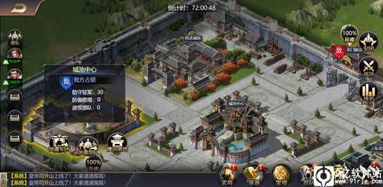 攻城三国志破解版无限元宝版游戏中内城中总共分为五个区域,在夺点战斗中也有很多的策略性。如游击战、围攻战等。点击每个区域查看守军部队的数量,攻击守军较少的点位。等看到敌人大军攻来势必又有其他点位守军空虚,再迅速转移去攻击另一个点位。