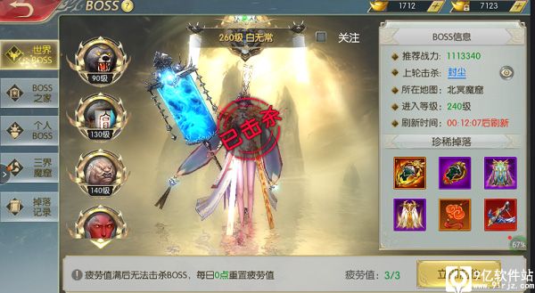 BOSS总共有4类:世界BOSS/BOSS之家/个人BOSS/三界魔窟
