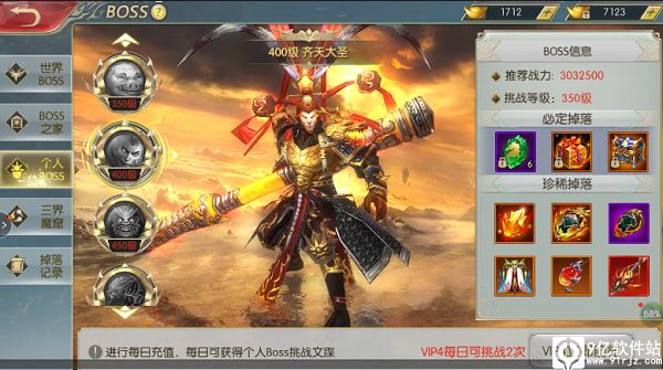 BOSS总害怕被抢,我表示十分的不满!!!就不能安安静静地让我战LU吗?所以啦,个人BOSS的介绍来咯,个人BOSS也是装备的主要来源之一哦。不过需要350级才可以开启个人BOSS功能咧