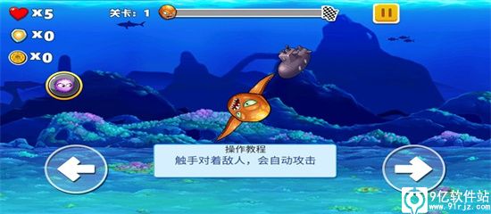 变异八爪鱼免广告版是一款以八爪鱼为题材的海底冒险战斗手游,这款游戏采用了卡通动漫画风,拥有独特的角色立绘,清一色海洋,带领大家来到一个趣味十足的海底世界。玩家们将在游戏中扮演一只强大呆萌的八爪鱼,和其它的海洋生物进行对决。在游戏刚开始时,八爪鱼只有两只触手,玩家们要经过不断的战斗,积累经验,或者购买武器装备提升自己,就能够慢慢升级到八只触手甚至是十四只。不仅如此玩家们还可以将这些触手自由变异,如换成具有高伤害值的企鹅、螃蟹钳、眼镜蛇等各种意想不到的武器,十分有趣。