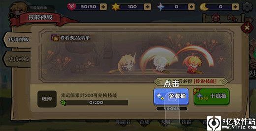 3、待消灭敌人后,点击神殿直接抽取技能;