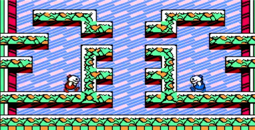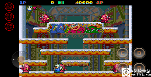 雪人兄弟手机版是一款童年经典闯关手游,很多网友都有在小霸王上游玩当时的经典卡带游戏,其中就有今天的主角雪人兄弟,而这次本站上传了游戏的移植版。这款游戏还原了小霸王上的经典游戏画面,依旧是熟悉的像素点风格,并且在游戏内为手机玩家加入了灵敏的虚拟摇杆,让你梦回儿时时光。玩家在游戏中将继续扮演兄弟中的一位,使用自己的特殊攻击将敌人变成雪球,并使用这个雪球击败更多的敌人。