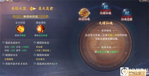 天罡一转后将成为赤焰天罡,普攻目标由2个增至4个、技能键位增加至5个、解锁一转装备,同时装备零、一转装备,解锁新的装备外观。还能为上仙们增加大量战力。