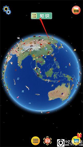 1、旋转和缩放三维地球仪。2、所有内容提供中英对照。