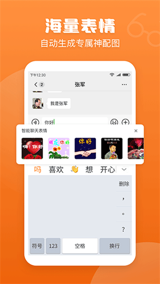 3、内置丰富的表情符号,有特色的文字输入即可显示相关表情,可自由选择多题材皮肤。