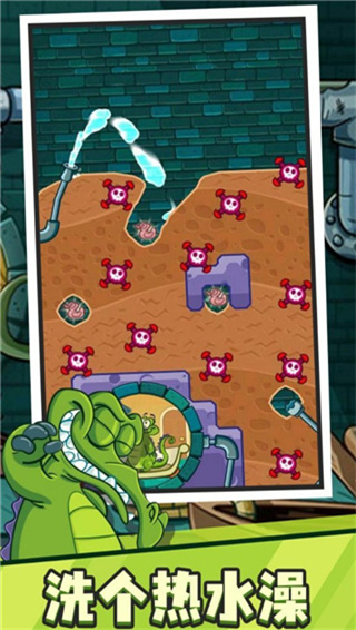 鳄鱼小顽皮爱洗澡官方正版是一款非常有趣味性的休闲游戏,采用优质的引擎打造,以我们非常熟悉的挖掘玩法作为游戏的主要玩法,并加入了大量的可互动道具和陷阱等玩法。玩家在游戏里需要去帮助主角小鳄鱼来收集它的洗澡水,游戏中的洗澡水被分散在不同的区域,玩家要在地图中挖洞来让这些水以正确的路线流进鳄鱼的浴缸。