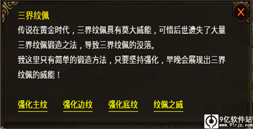 一、三界纹佩使用纹佩精华可以在铁匠旁三界纹佩处对纹佩进行升级,纹佩可以通过打boss和密令试炼中获得
