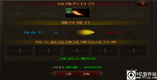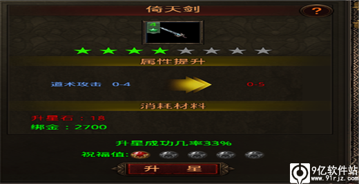 在锻造界面,花费绑金可为装备进行升星,升星可增加装备攻击属性
