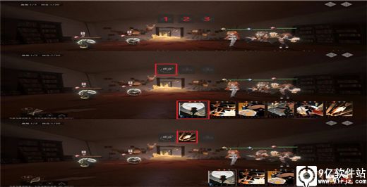 每回合的行动次数视在场人数而定。如图所示,我方当前场上有三人。所以本回合我们可以行动三次。每次选择使用或者移动卡牌都需要消耗一点行动点。