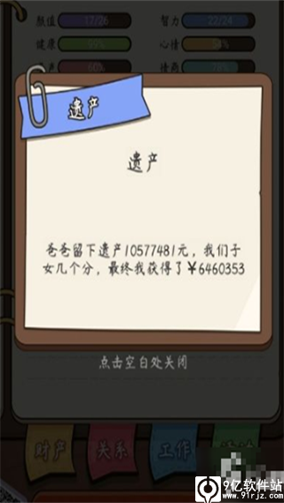 5,孩子最好留到快四十岁的时候生这样下一代继承家产也不用等太久,期间利用vip免费的礼物把父母关系升满,父母死后可以稳稳地继承家产。当然这个过程中最好注意一下健康值,健康值太少了会突然嗝屁,太早嗝屁了孩子没满16岁是不可以继续玩下一代的。