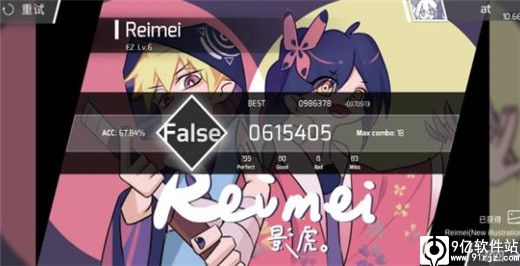 4、每首歌曲结束的时候会有一个评价出现。False代表的是挑战失败,右边则是分数。