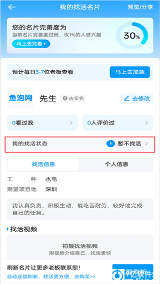 如果你是想在这里找工作也非常方便,这款鱼泡网找工作app官方版软件内有许多老板发布不同类型的工作,系统或根据你想找的工作类型、期望薪资、地点范围等方面为你筛选出合适的工作,在这里你可以和老板面对面线上交流,详细了解工作内容、工资待遇、工作时间等情况后再决定要不要接受这份工作,并且软件内是支持拍摄视频找工作的,你可以录下自己的工作瞬间,让老板看到你的工作能力,这样会更容易找到工作哟,有招工找工需求的小伙伴快来9亿软件站下载鱼泡网找工作app官方版吧!