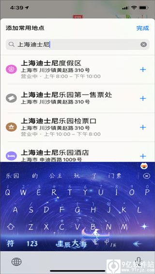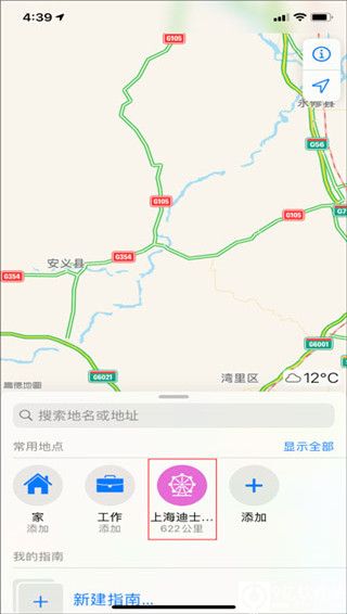 2、在搜索栏中查询想要定位的地名,如上海迪士尼;