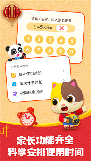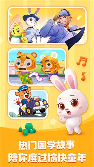 益智互动:跟着卡通动物哼唱英语儿歌,讲童话故事哄睡小猫咪,和熊猫奇奇一起制作美食等。