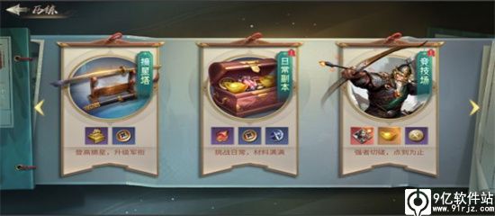 历练模块包含:摘星塔、日常副本、竞技场、古城、幻境试炼、巅峰对决、机关演武、群雄并起、藏宝地穴、灵宠试炼1、摘星塔一次性的爬塔副本,不同层数要求通关条件不同,通关可获得大量虎符奖励