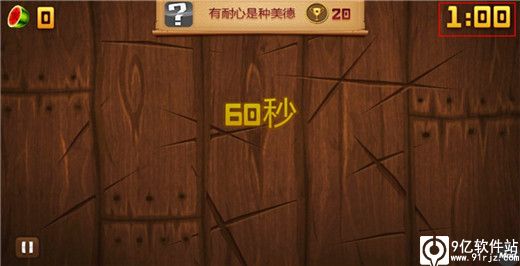 1、该模式是由水果忍者经典旧版本游戏时间的限制的,游戏时间为一分钟。