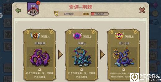 2、采集五级以上的的丛林树有几率出藤蔓,藤蔓做到满级的藤蔓小屋,点击出三个荆棘,之后会在周边陆续出四个荆棘,一共七个 出完就可以卖掉了。