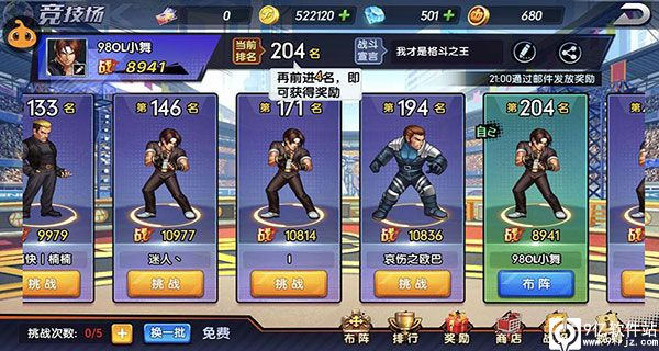 获取途径1:竞技场竞技场作为游戏中可以免费获得钻石的一个主要方法,小伙伴们参与竞技场挑战,只要赢得了排名就能够收获一定数量的钻石(ps:膜拜可以拿金币)。排名越高,自然可以获得的拳魂觉醒钻石奖励也就越丰厚。