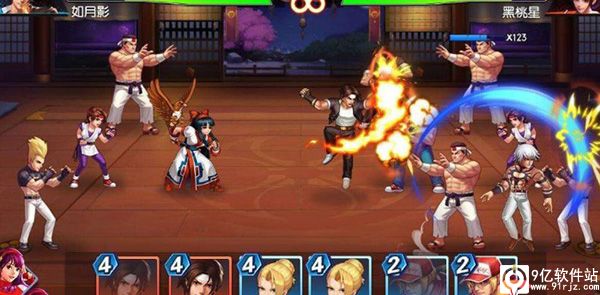 喜欢打特效技能的旁友可以尝试走一波灼烧流,需要的英雄有舞,草薙京,草薙菜舟,李烈火,八神和酒鬼。